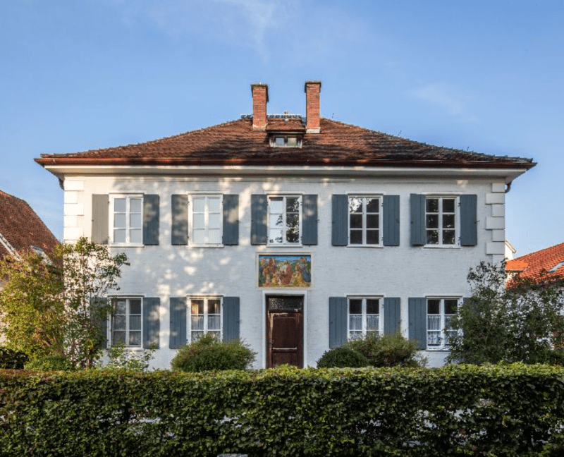 Über der ehemaligen Haustüre befindet sich ein bemerkenswertes Bild. Das Eingangsbild trägt den Titel „Jesus der Kinderfreund“ und erinnert daran, welch hohen Stellenwert die religiöse Erziehung damals hatte.