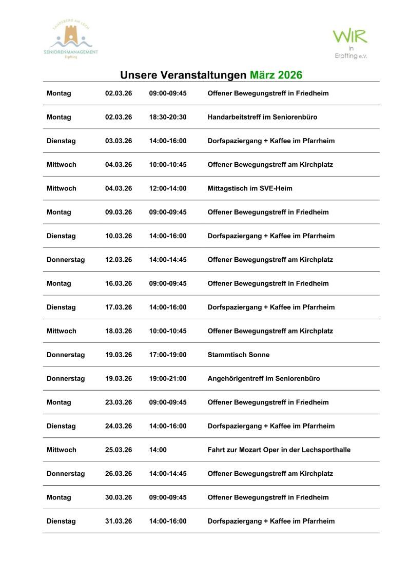 WIR – Termine im März 2026
